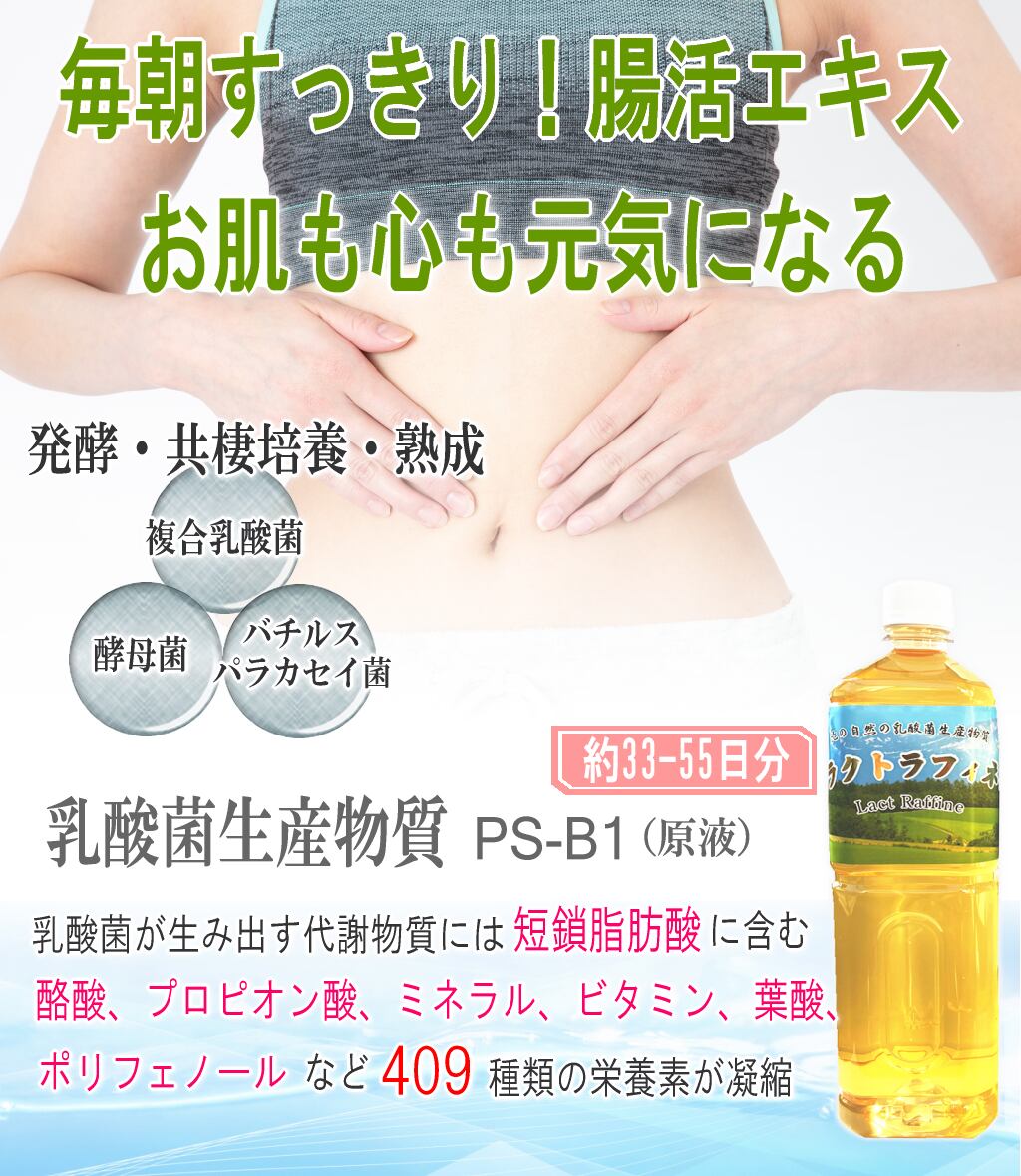 乳酸菌生産物質ドリンク ラクトラフィネ1000mlは、美と健康を追求する方々におすすめの特別な飲み物です。高濃度の乳酸菌生産物質や酵素が腸内フローラの改善や腸活、美活に効果的です。
